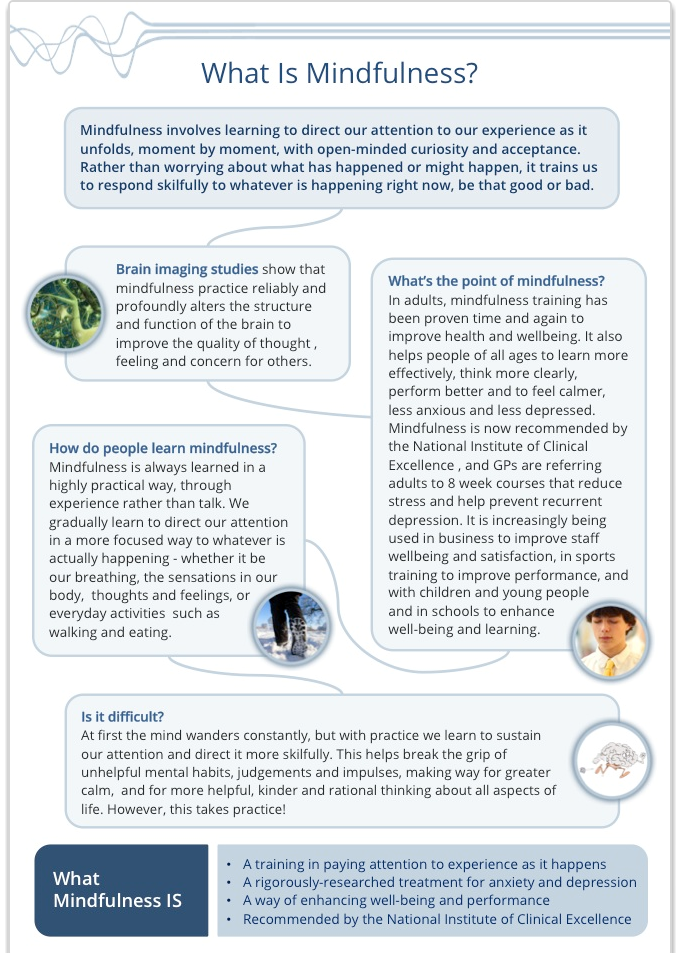 Several of our staff have undertaken Professional Development in this area. As a school we are proud to say that we have several methods of making the children aware of the importance of mindfulness and how we can take time out of everyday to help us practice this ability. One of these is a Mindfulness Education Program titled Smiling Minds. Please click on this link to read about the benefits a program such as this has for our children.